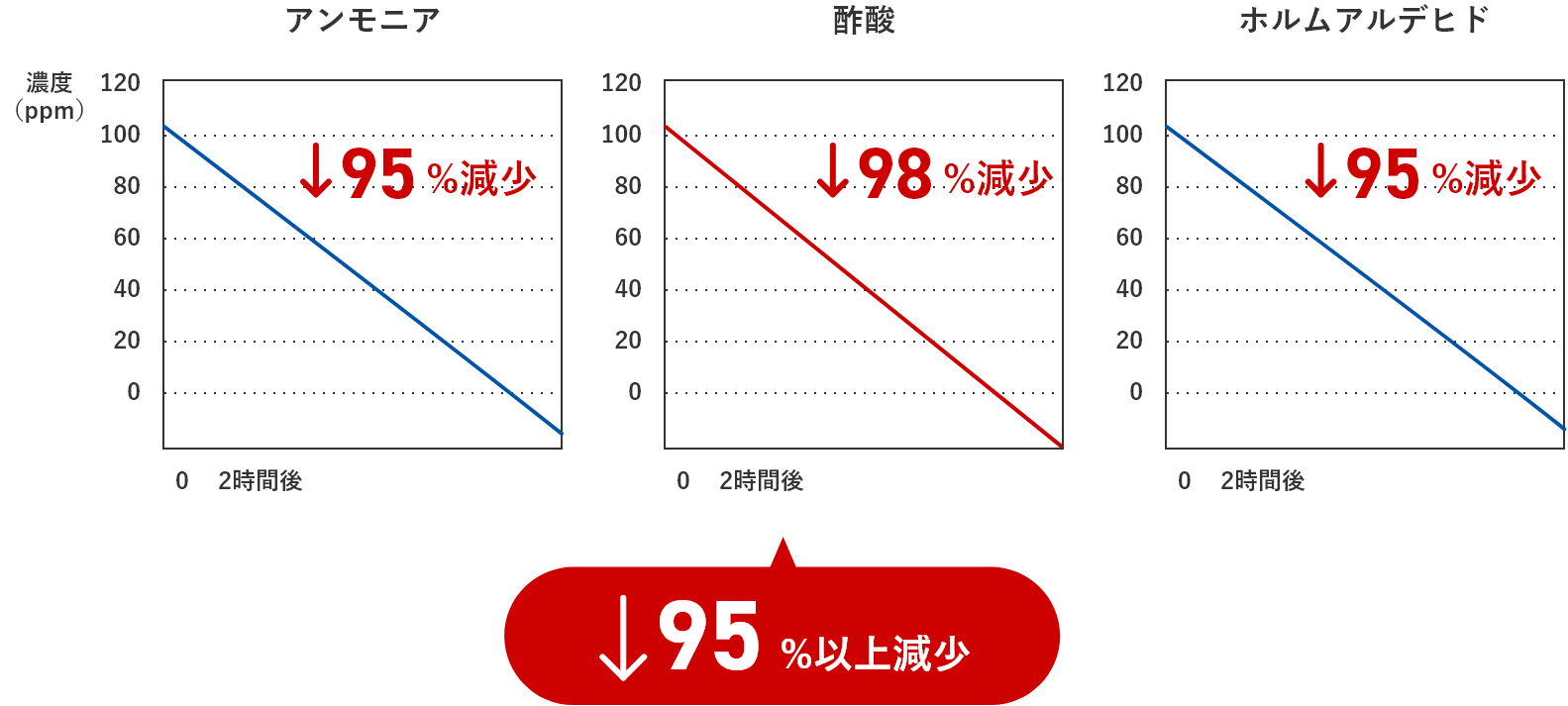 | 臭気成分 | アンモニア | 酢酸 | ホルムアルデヒド |